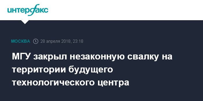 Москва. 28 апреля. INTERFAX.RU - Московский государственный университет им. М.В.Ломоносова (МГУ) закрыл незаконную свалку на территории будущего технологического центра "Воробьевы горы" и не допустит, чтобы туда снова свозили мусор, заявили "Интерфаксу" в пресс-службе МГУ.