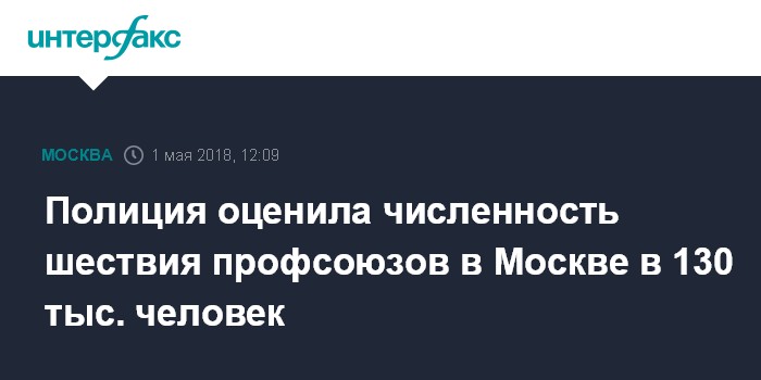 Москва. 1 мая. INTERFAX.RU - На первомайское профсоюзное шествие на Красной площади в Москве пришло 130 тыс. человек, сообщает столичный главк МВД.