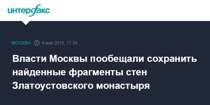 Власти Москвы пообещали сохранить найденные фрагменты стен Златоустовского монастыря