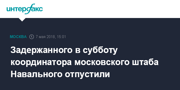 Задержанного в субботу координатора московского штаба Навального отпустили