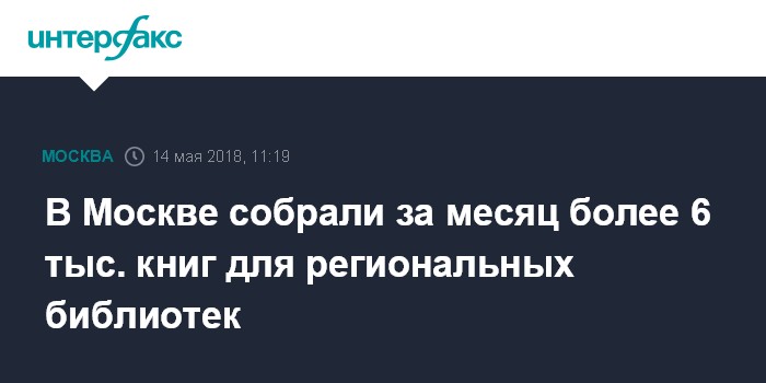 Москва. 14 мая. INTERFAX.RU - Более шести тысяч книг собрали библиотеки Департамента культуры города Москвы за месяц после старта акции "Скорая библиотечная помощь", сообщили в мэрии столицы. Основную часть изданий передали в дар жители города.