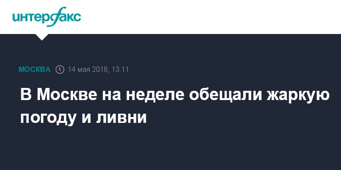 Москва. 14 мая. INTERFAX.RU - По-летнему жаркая погода с грозами ожидается в Московском регионе до конца рабочей недели, выходные начнутся с облачной и дождливой погоды с небольшим похолоданием до +20...+22, заявил "Интерфаксу" глава Гидрометцентра России Роман Вильфанд.