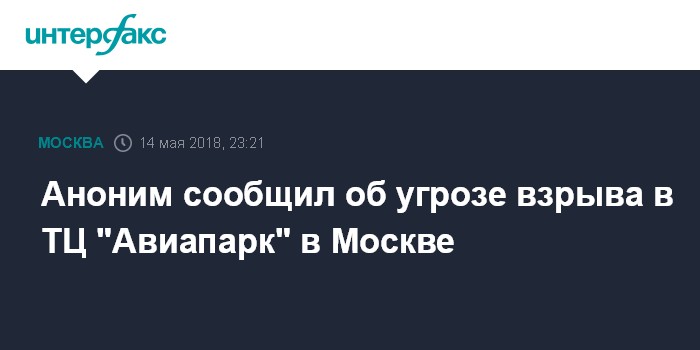 Москва. 14 мая. INTERFAX.RU - Экстренные службы проверяют информацию об угрозе взрыва в торговом центре "Авиапарк" в Москве, сообщил "Интерфаксу" информированный источник.
