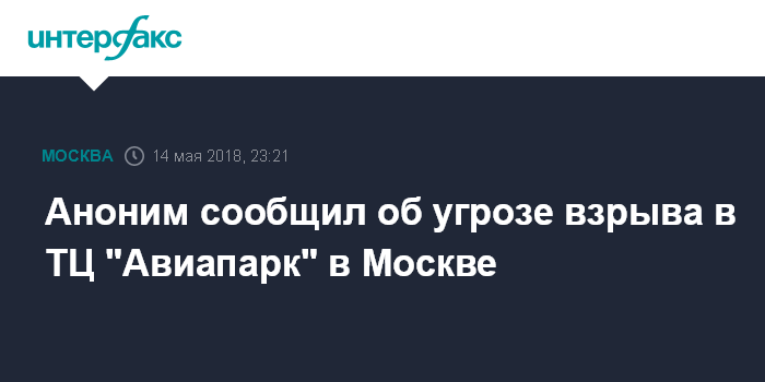 "Поступил анонимный звонок об угрозе взрыва ТЦ "Авиапарк" по адресу улица Авиаконструктора Микояна", - сказал собеседник агентства.