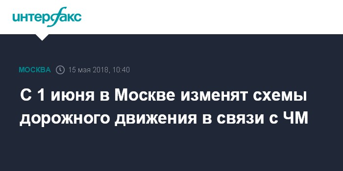 С 1 июня в Москве изменят схемы дорожного движения в связи с ЧМ
