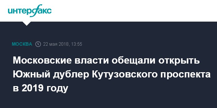 Москва. 22 мая. INTERFAX.RU - Южный дублер Кутузовского проспекта планируется сдать в эксплуатацию в 2019 году. Об этом сообщил в интервью "Российской газете" руководитель департамента строительства Москвы Андрей Бочкарев.