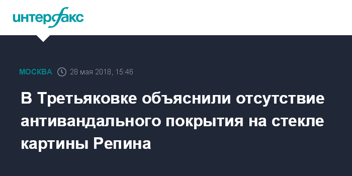Ранее источник сообщил "Интерфаксу", что на защищавшем картину Репина стекле не было антивандального покрытия.