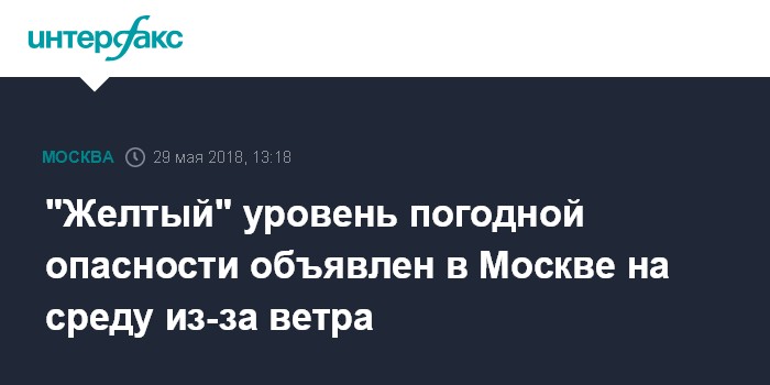 Москва. 29 мая. INTERFAX.RU - Гидрометцентр России объявил на 30 мая "желтый" уровень погодной опасности в столичном регионе из-за усиления ветра.