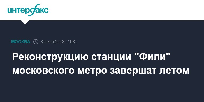 Москва. 30 мая. INTERFAX.RU - Ремонтные работы на станции "Фили" Филёвской линии Московского метрополитена, открытый наземный участок которого проходит полную реконструкцию с конца 2016 года, завершатся летом, сообщил первый замначальника метро Дмитрий Дощатов журналистам в среду.
