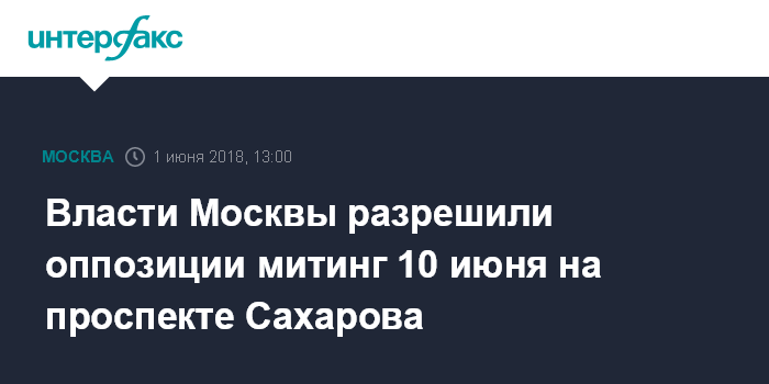 Власти Москвы разрешили оппозиции митинг 10 июня на проспекте Сахарова