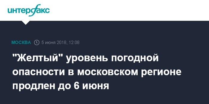 "Желтый" уровень погодной опасности в московском регионе продлен до 6 июня