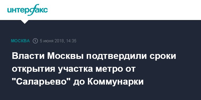 Власти Москвы подтвердили сроки открытия участка метро от "Саларьево" до Коммунарки