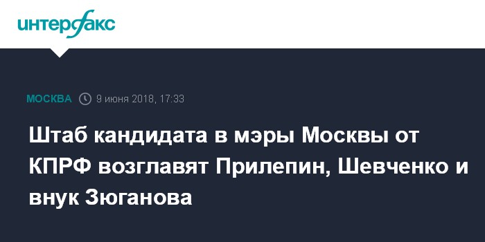 Штаб кандидата в мэры Москвы от КПРФ возглавят Прилепин, Шевченко и внук Зюганова