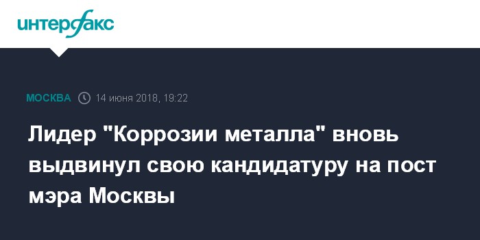 Лидер "Коррозии металла" вновь выдвинул свою кандидатуру на пост мэра Москвы