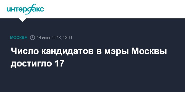 Москва. 16 июня. INTERFAX.RU - Общее число кандидатов на должность мэры Москвы, подавшие соответствующие документы на выдвижение в Мосгоризбирком, в субботу достигло 17.