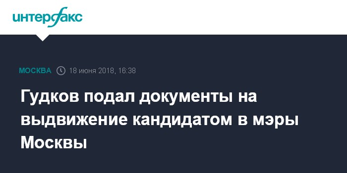 Москва. 18 июня. INTERFAX.RU - Оппозиционный политик Дмитрий Гудков в понедельник подал документы в Мосгоризбирком на выдвижение кандидатом на должность мэра Москвы, сообщили "Интерфаксу" в городской комиссии.
