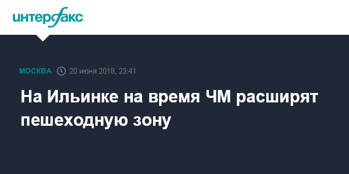 Москва. 20 июня. INTERFAX.RU - С 21 июня и до конца Чемпионата мира по футболу на улице Ильинка в центре Москвы расширят пешеходную зону, сообщили "Интерфаксу" в пресс-службе Центра организации дорожного движения столицы в среду.