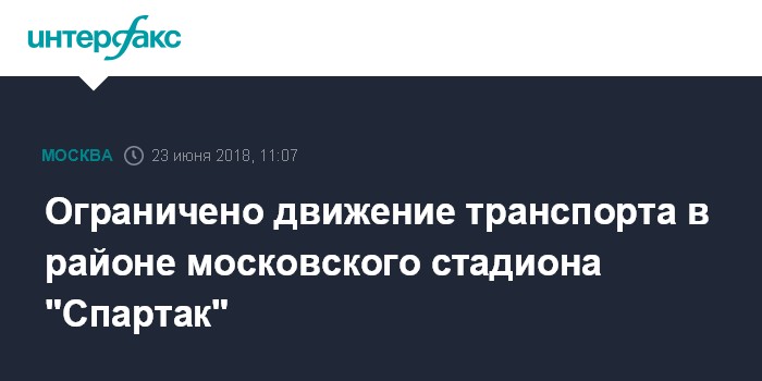 Москва. 23 июня. INTERFAX.RU - Ограничения движения в связи с матчем Бельгия-Тунис введены в субботу в районе московского стадиона "Спартак".