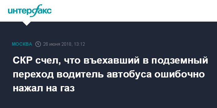 СКР счел, что въехавший в подземный переход водитель автобуса ошибочно нажал на газ
