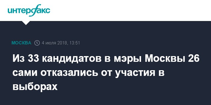 Из 33 кандидатов в мэры Москвы 26 сами отказались от участия в выборах