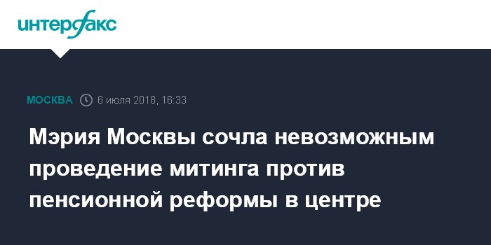 Мэрия Москвы сочла невозможным проведение митинга против пенсионной реформы в центре