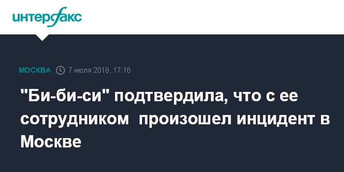 Москва. 7 июля. INTERFAX.RU - На "Би-би-си" подтвердили, что с их сотрудником в Москве произошел инцидент, но он уже в порядке и продолжает работу.
