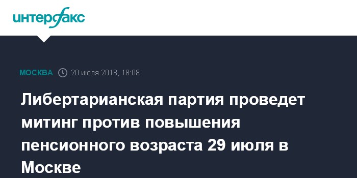 Либертарианская партия проведет митинг против повышения пенсионного возраста 29 июля в Москве