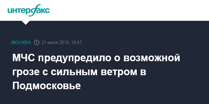 Москва. 21 июля. INTERFAX.RU - МЧС по Московской области предупреждает о сильном ветре и грозе, непогода будет сохраняться до позднего вечера.