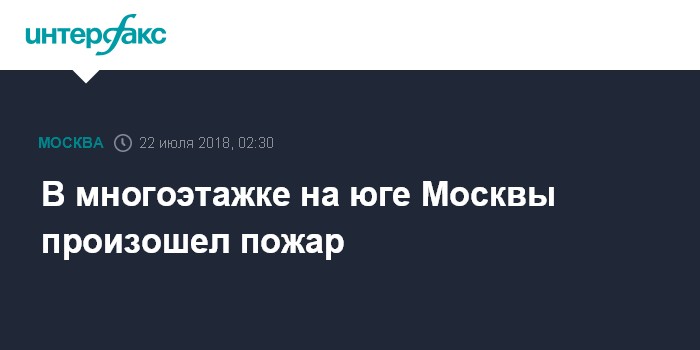 Москва. 22 июля. INTERFAX.RU - Пожар произошел в ночь на воскресенье в жилом многоэтажном доме на юге Москвы, сообщает столичное ГУ МЧС России. Согласно сообщению на сайте ГУ МЧС, информация о пожаре в квартире, расположенной на 17 этаже 17-этажного дома по адресу Гурьевский проезд, 11, корпус 1, поступила в 00:28 мск.