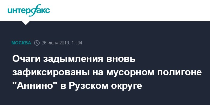 Москва. 26 июля. INTERFAX.RU - На закрытом полигоне "Аннино" в Рузском округе Московской области зафиксированы отдельные очаги задымления. Об этом сообщает пресс-служба местной администрации со ссылкой на главу округа Максима Тарханова.