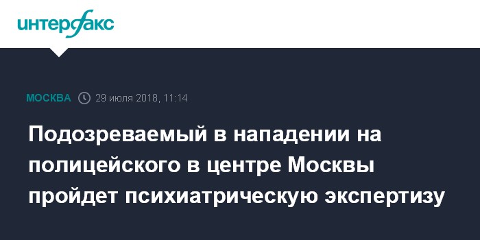 "Подозреваемый в нападении на сотрудника полиции в центре Москвы доставлен в следственный отдел. Задержанному будет назначена судебно-психиатрическая экспертиза, в результате которой будет установлено его психическое состояние", - сообщила Иванова.