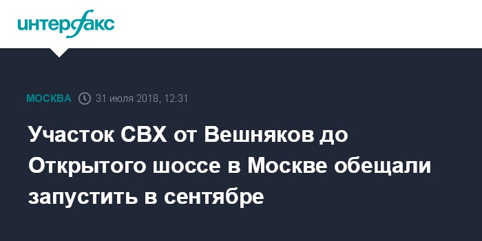 Участок СВХ от Вешняков до Открытого шоссе в Москве обещали запустить в сентябре