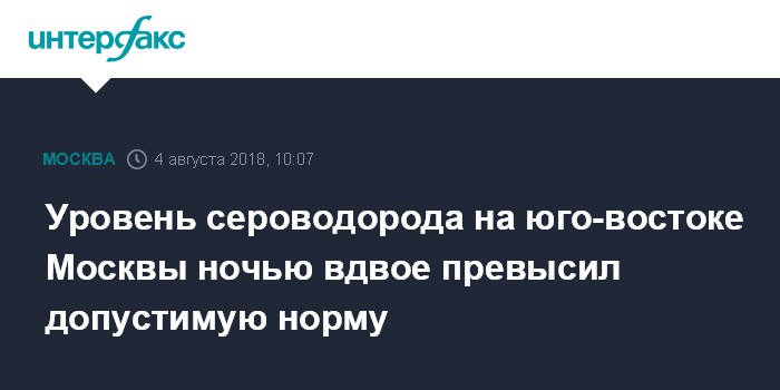 Уровень сероводорода на юго-востоке Москвы ночью вдвое превысил допустимую норму