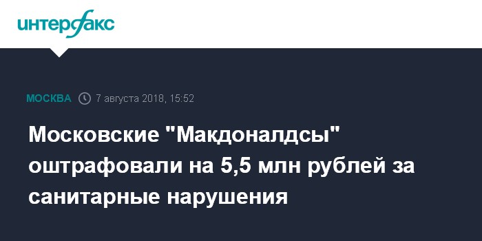 Московские "Макдоналдсы" оштрафовали на 5,5 млн рублей за санитарные нарушения