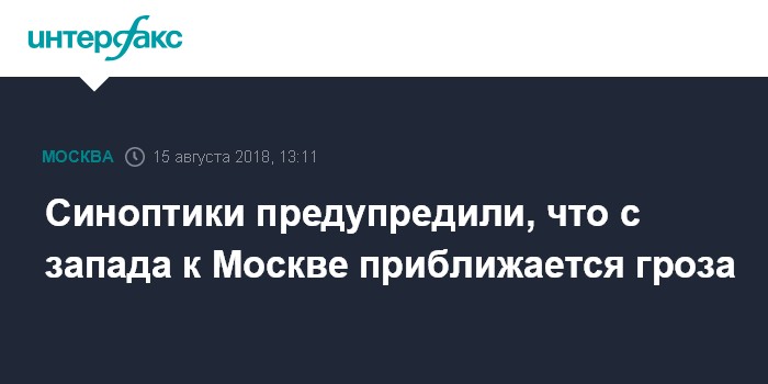 Москва. 15 августа. INTERFAX.RU - Грозовой фронт приблизился к Москве, осадки ожидаются сначала в западных, затем в восточных районах столицы, сообщает Гидрометеобюро Москвы и Московской области.