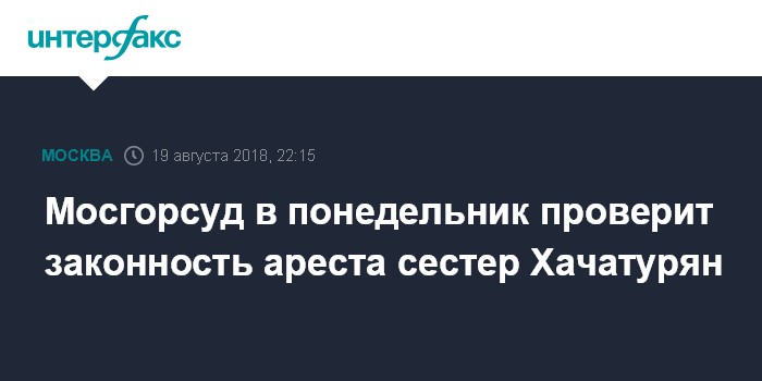 Мосгорсуд в понедельник проверит законность ареста сестер Хачатурян