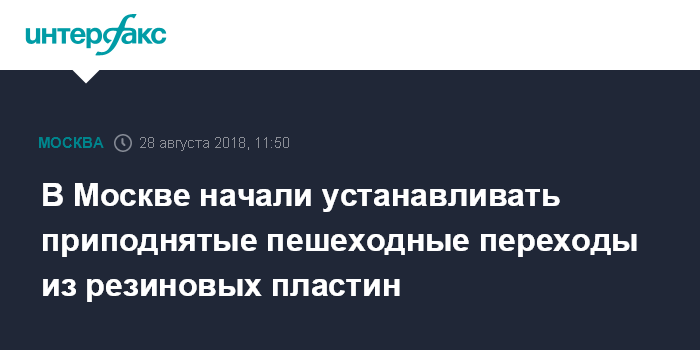 Москва. 28 августа. INTERFAX.RU - В Москве стартовал "большой эксперимент" по установке приподнятых пешеходных переходов из резиновых пластин.