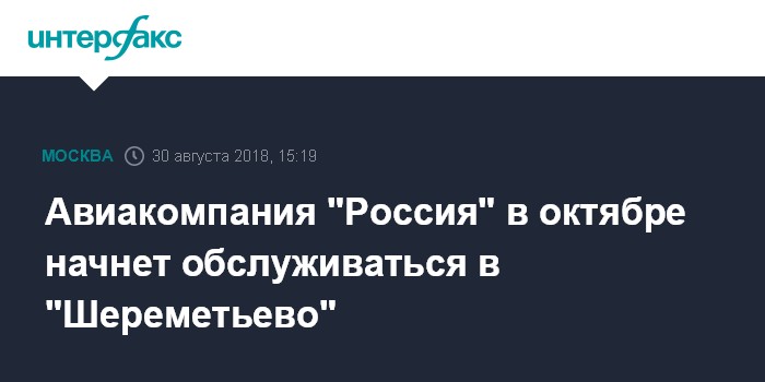 Москва. 30 августа. INTERFAX.RU - Авиакомпания "Россия", базирующаяся в аэропорту "Внуково", с 28 октября начнет обслуживать часть рейсов в "Шереметьево" (терминал "D").