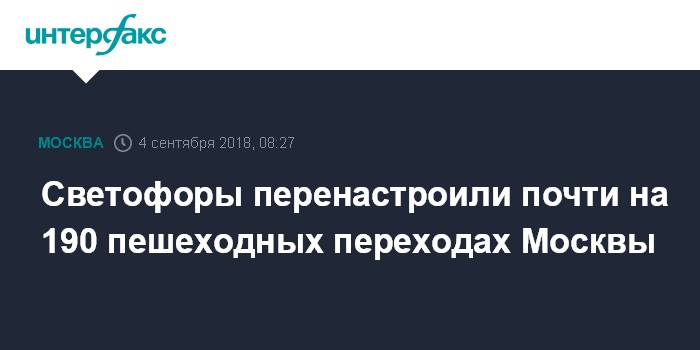 Москва. 4 сентября. INTERFAX.RU - Режим работы светофоров изменили еще на 59 пешеходных переходах столицы, сообщил заместитель мэра Москвы Максим Ликсутов.