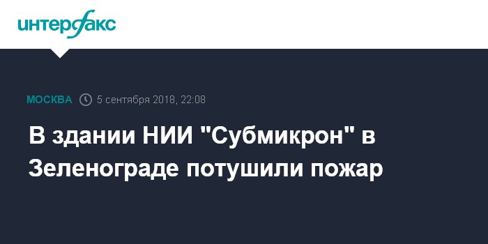 Москва. 5 сентября. INTERFAX.RU - Пожар в здании НИИ "Субмикрон" в Зеленограде ликвидирован.
