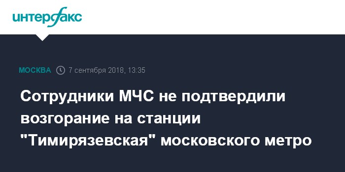 Сотрудники МЧС не подтвердили возгорание на станции "Тимирязевская" московского метро