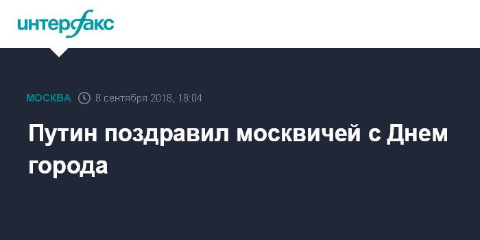 Москва. 8 сентября. INTERFAX.RU - Президент России Владимир Путин поздравил москвичей с Днем города и отметил, что столица хорошеет и благоустраивается.