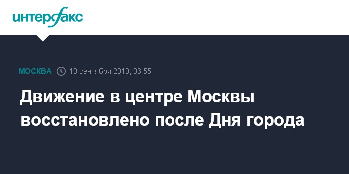 Москва. 10 сентября. INTERFAX.RU - Движение транспорта в центре российской столицы, перекрытое в ночь на 7 сентября для подготовки и празднования Дня города 8-9 сентября, к утру понедельника вновь восстановилось.