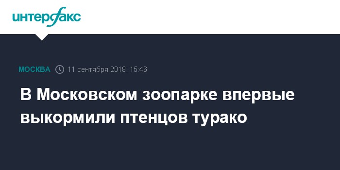 Москва. 11 сентября. INTERFAX.RU - Специалисты Московского зоопарка впервые получили потомство от гвинейских птиц турако, которые находятся в Красной книге, сообщила во вторник пресс-служба зоопарка.