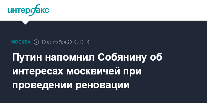 Путин напомнил Собянину об интересах москвичей при проведении реновации
