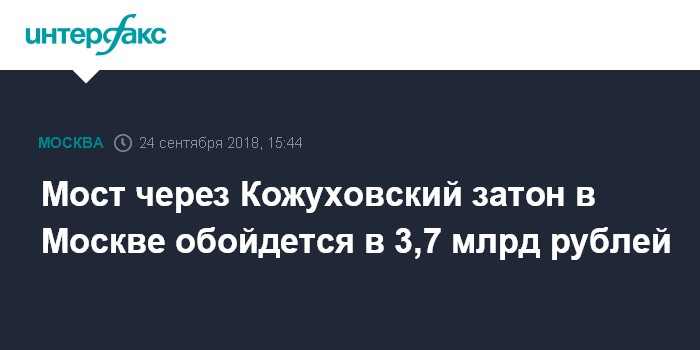 Москва. 24 сентября. INTERFAX.RU - ПАО "Мостотрест" построит мост через Кожуховский затон на Москве-реке (Нагатинская пойма).