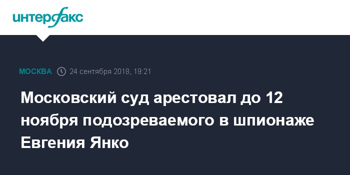 Московский суд арестовал до 12 ноября подозреваемого в шпионаже Евгения Янко