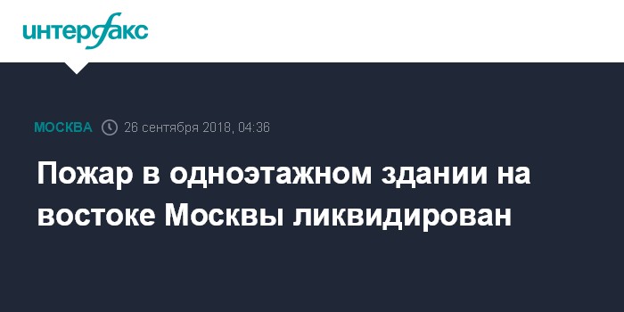 Москва. 26 сентября. INTERFAX.RU - Пожарные ликвидировали возгорание в одноэтажном металлическом здании на востоке Москвы, сообщает столичное ГУ МЧС России.