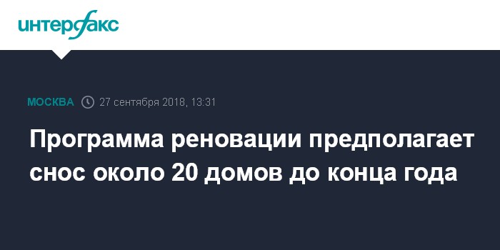 Москва. 27 сентября. INTERFAX.RU - До конца этого года Фондом реновации запланированы работы по сносу 18 отселенных домов, сообщил "Интерфаксу" глава департамента строительства Москвы Андрей Бочкарев.