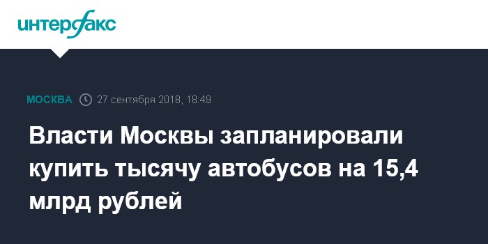 Москва. 27 сентября. INTERFAX.RU - Департамент города Москвы по конкурентной политике объявил два электронных аукциона на поставку городских низкопольных автобусов для нужд ГУП "Мосгортранс", говорится в материалах портала госзакупок.